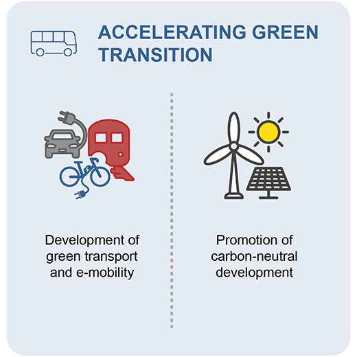4. Accelerating green transition: Improving connectivity and reducing commute time through more climate-smart modes of transport and raising awareness about the important challenges that climate change impact and adaptation requirements present for the Hong Kong transport network.