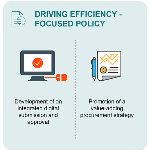 3. Driving efficiency-focused policy: Focusing on improving the existing approval processes and procurement strategies through leveraging digital technologies and modifying existing communication mechanisms.