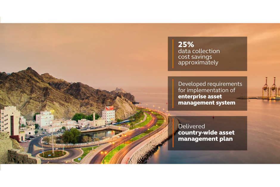 Arcadis helped Oman’s Public Authority for Electricity and Water (PAEW) to improve its overall processes for water management services and deploy new systems and procedures. This was achieved by conducting a needs assessment, developing organizational objectives and asset inventory, and preparing an asset management plan.